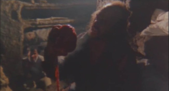 Sorti en 1980, le film s’est attiré une réputation de film extrême à cause de deux scènes qui, à l’époque, étaient vraiment choquantes : une scène où le méchant anthropophage arrache un foetus du ventre de sa mère pour le manger, et une où il se mange lui même après s’être pris un coup de pioche dans le bide.