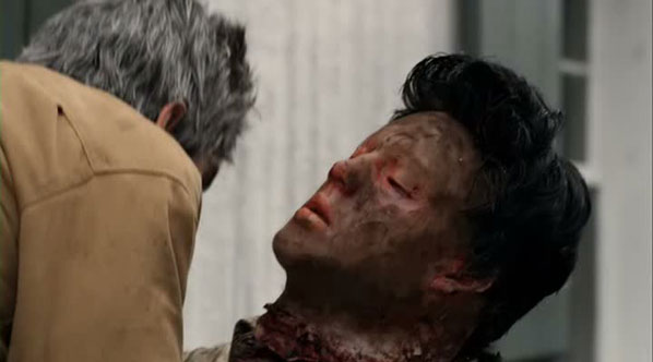 Mais vous allez me dire « oh, allez, c’est un slasher avec un mec avec une tête en bandages qui arrache des visages, les morts doivent être bien cool nan ? »… Nan. Même quand il arrache son premier visage, on a un vague sursaut de surprise, on se sent presque rassuré, mais NON, ça reste nul. Ah si, y a un truc que j’adore dans ce genre de film. C’est quand on voit le méchant au loin pendant que la future victime au premier plan vit sa vie pépère sans se douter de sa présence.